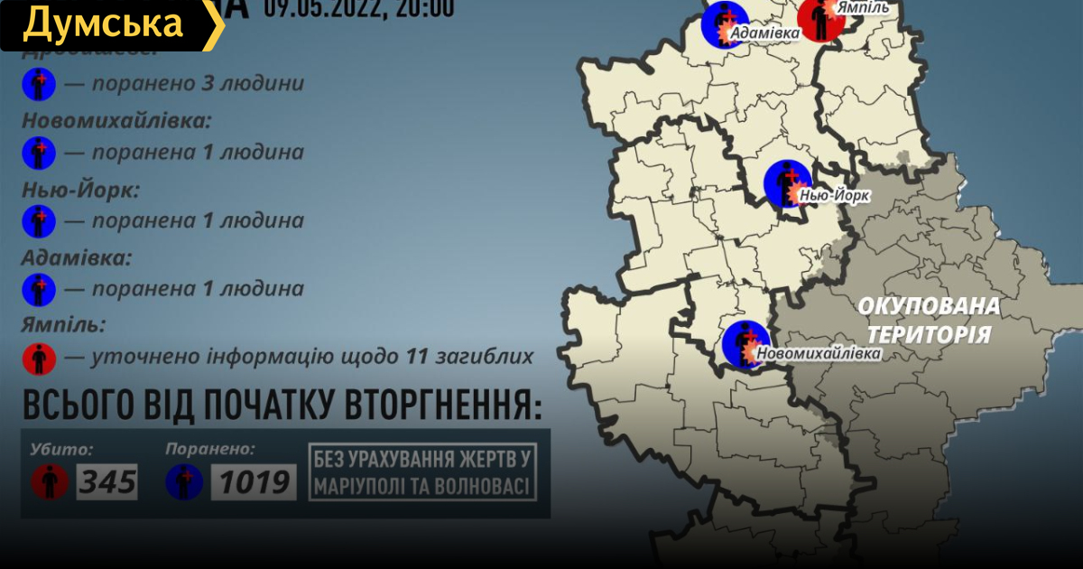 В Донецкой области в результате российских обстрелов 9 мая ранены 6 мирных жителей. Об этом сообщил глава Донецкой ОВА Павел Кириленко. «За 9 мая от российских обстрелов ранения получили шесть мирных жителей Донецкой области», — отметил глава ОВА. Кроме того, по его словам, удалось уточнить информацию об 11 погибших в Ямполе за период с 23 по 28 апреля. Он также напомнил, что невозможно установить точное количество жертв в Мариуполе и Волновахе. СМЕРТЬ РОСІЙСЬКИМ ОКУПАНТАМ! Помітили помилку? Виділяйте слова з помилкою та натискайте control-enter |