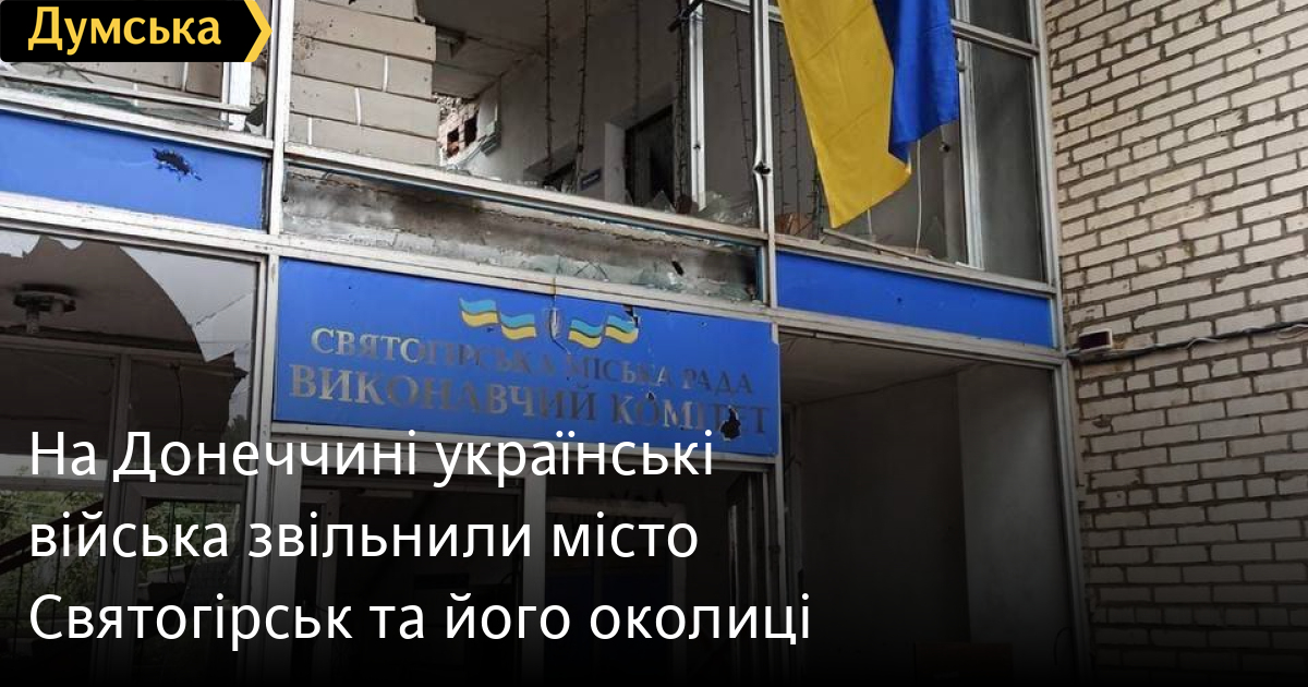Збройні сили України в рамках контрнаступу, що триває, звільнили місто Святогірськ на півночі Донецької області, а також село Богородичне, що знаходиться поряд.