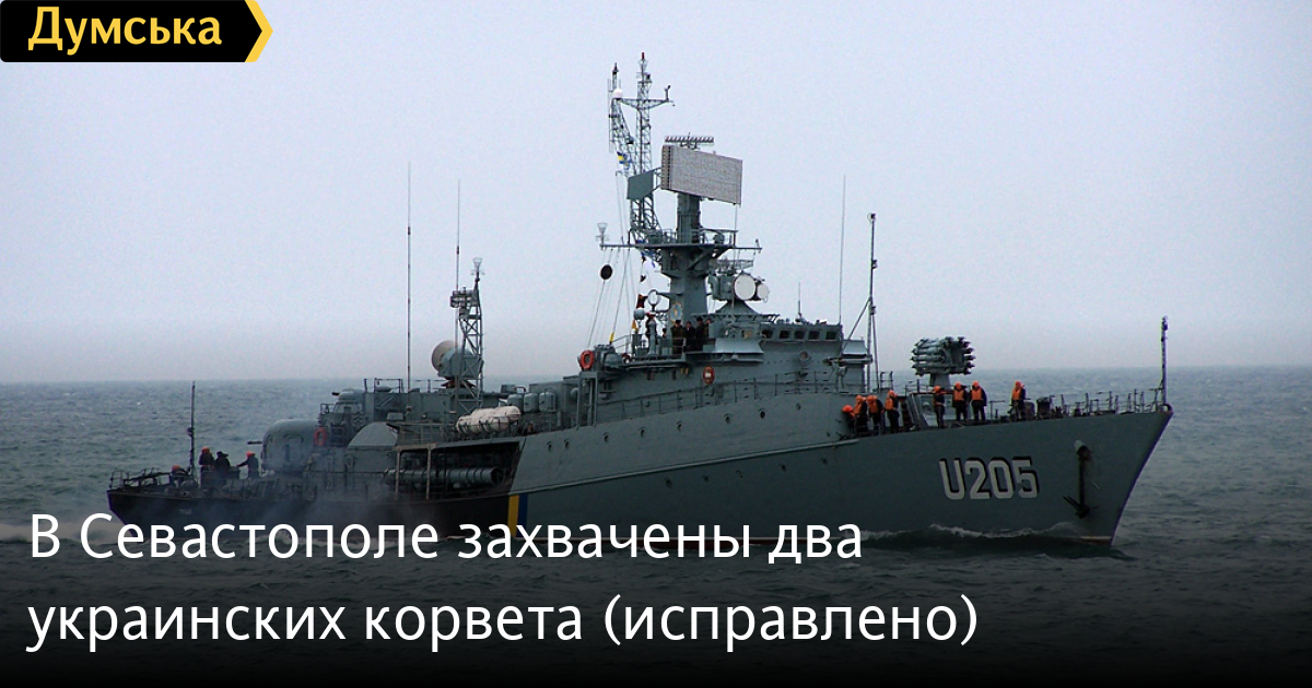 Украинские ВМС лишились двух боевых кораблей. В Стрелецкой бухте Севастополя российским военнослужащим удалось взять приступом корветы «Луцк» и «Хмельницкий».