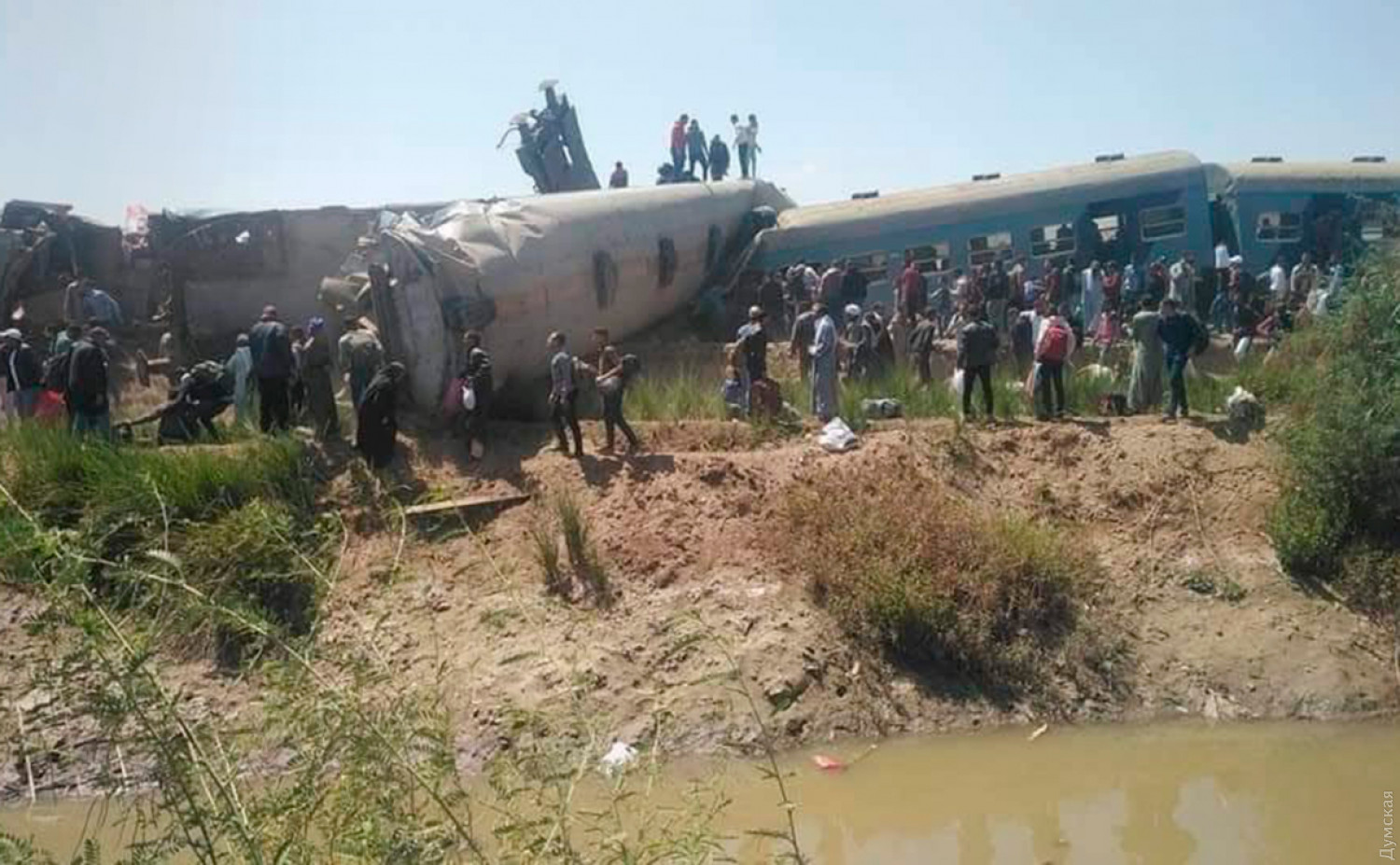 В Египте столкнулись два пассажирских поезда: более 30 человек погибли (обновлено)Сегодня в Египте столкнулись два пассажирских поезда, в результате чего погибли минимум 32 человека, а 84 - получили ранения. Об этом сообщила пресс-служба Министерства здравоохранения Египта. Авария произошла в городе Тахта провинции Сохаг. Что стало причиной столкновения пока не сообщается. Как пишут местные СМИ, один из поездов врезался сзади в другой. В результате столкновения три пассажирских вагона сошли с рельсов. На место трагедии отправили 36 машин скорой помощи. Египетская прокуратура распорядилась начать расследование по факту случившегося, а министр транспорта приказал задержать машинистов обоих поездов. ОБНОВЛЕНО в 17:00. Стало известно, что авария произошла из-за того, что поезд, который следовал из Луксора в Александрию, совершил резкую остановку. Кто-то дернул в поезде стоп-кран. СМЕРТЬ РОССИЙСКИМ ОККУПАНТАМ! Заметили ошибку? Выделяйте слова с ошибкой и нажимайте control-enter |