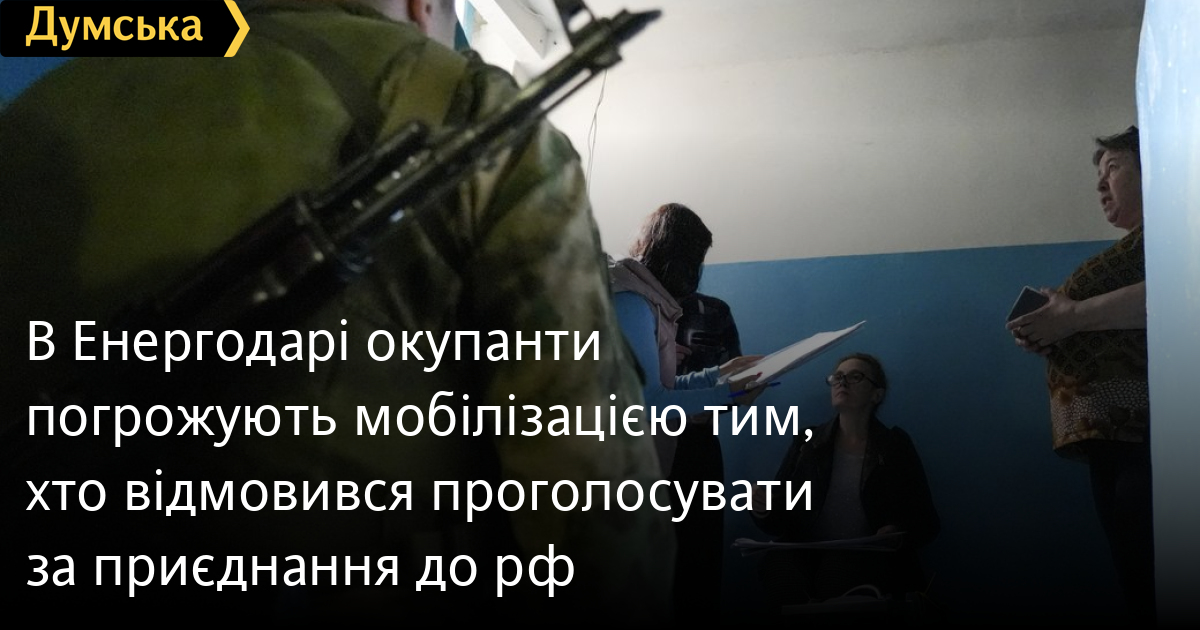 Мешканцям Енергодару, які наважуються проголосувати проти приєднання до рф на псевдореферендумі, окупанти погрожують мобілізацією.