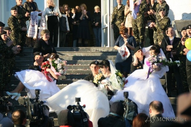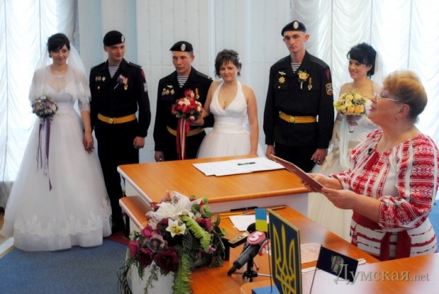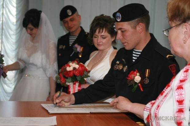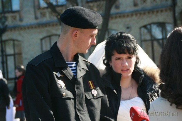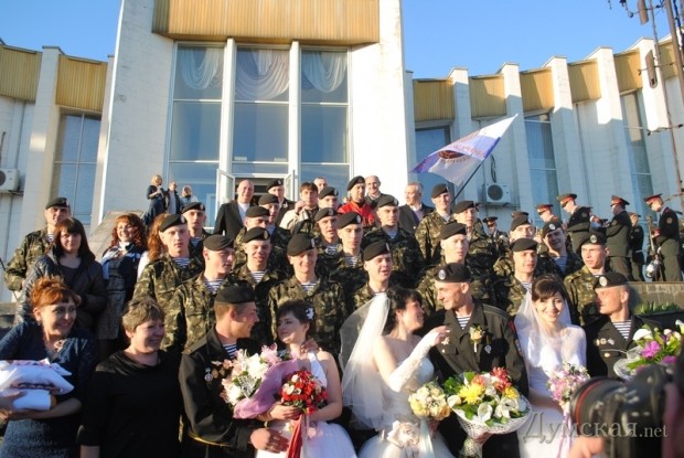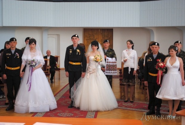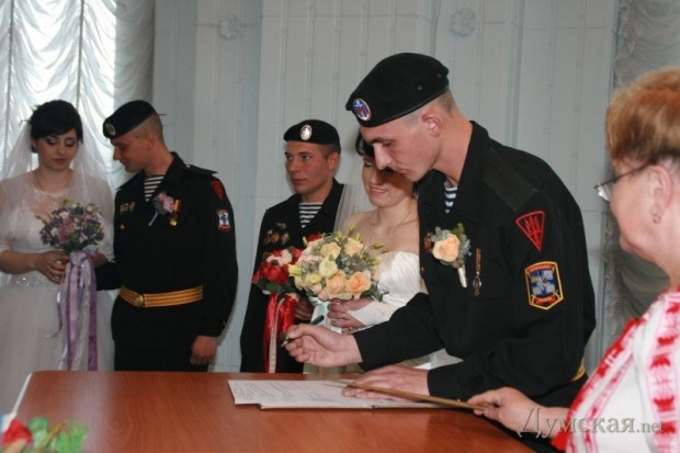 Сразу три свадьбы сыграли в Первом отдельном Феодосийском батальоне морской пехоты, который был эвакуирован из оккупированного Крыма.