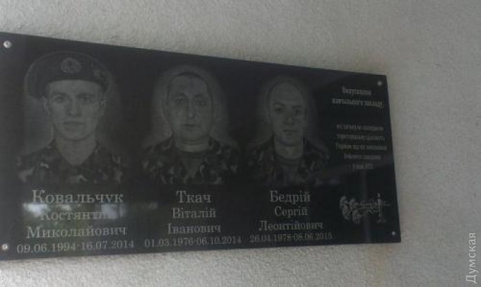Мемориальную доску сразу трем погибшим на востоке Украины военнослужащим открыли в райцентре Кодыма.
