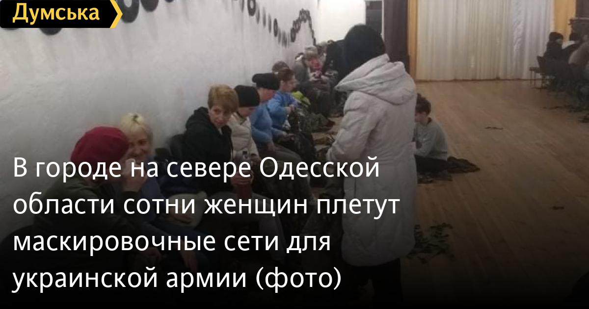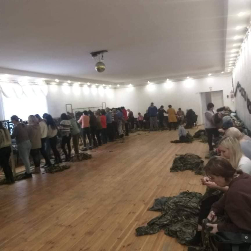 Сотни женщин прямо сейчас делают маскировочные сети для украинских военных в Кодыме Одесской области.