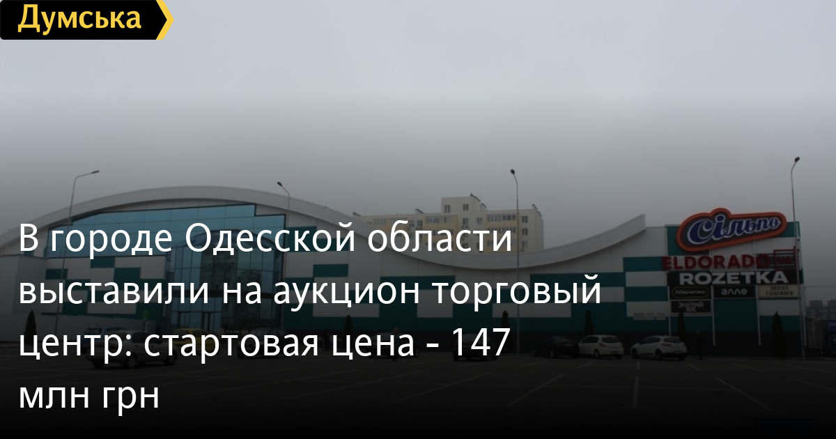 У місті Одеської області виставили на аукціон торговельний центр: стартова ціна — 147 млн грнТорговельний центр «Хвиля», розташований у Южному Одеської області, виставили на електронний аукціон держпідприємства Міністерства юстиції «СЕТАМ». Його стартова ціна — 147 млн грн, повідомили в ДП. Зазначається, що загальна площа чотириповерхового центру з нежитловими приміщеннями, комплексом кафе, спортмайданчиками — 6361,9 кв. м, площа земельної ділянки під ним - 1,8 га. «Хвилю» ввели в експлуатацію 2020 року. ТЦ продається добровільно. Аукціон відбудеться 15 березня. СМЕРТЬ РОСІЙСЬКИМ ОКУПАНТАМ! Помітили помилку? Виділяйте слова з помилкою та натискайте control-enter |