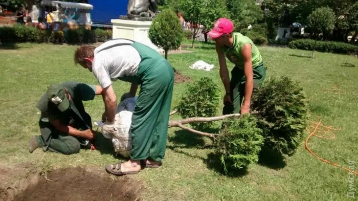 Работники КП «Горзелентрест» посадили туи в Городском саду, рассказали на предприятии.