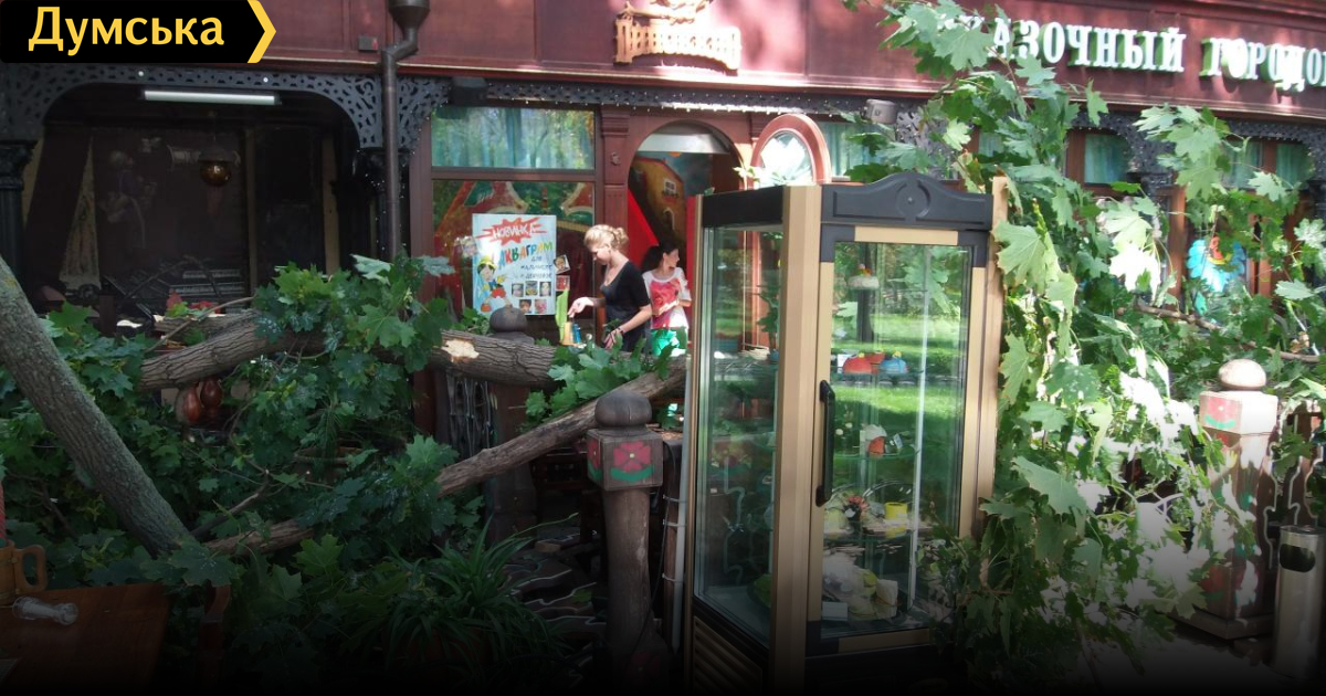 Как сообщают очевидцы в «Одесском форуме», ветка также повредила площадку и детского кафе. В момент ее падения за столиками никого не было, так что обошлось без пострадавших.