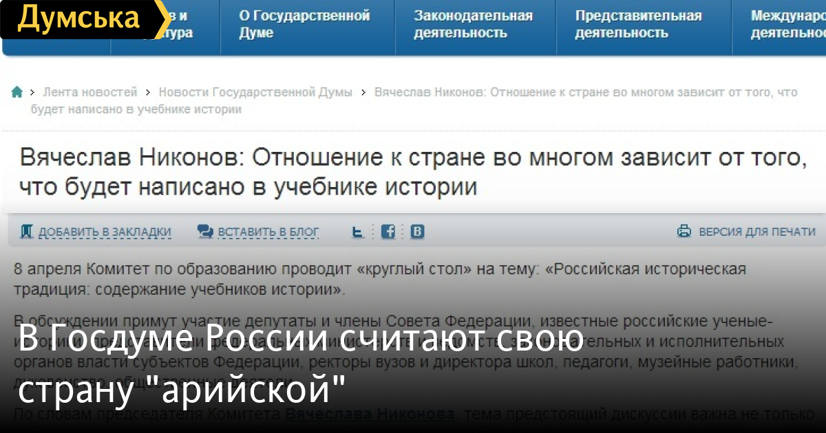 Российские СМИ приводят другую цитату парламентария об «арийцах»: