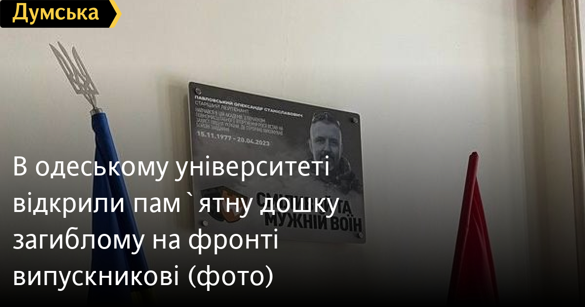 В одеському університеті відкрили пам`ятну дошку загиблому на фронті випускниковіМеморіальну дошку старшому лейтенантові Олександру Павловському, який загинув у бою з російськими окупантами, відкрили в холі головного корпусу Державного університету інтелектуальних технологій та зв'язку (колишня Академія зв'язку). Як розповів «Думській» Віталій Гілевич, керівник Служби піклування 126-ї окремої бригади територіальної оборони Збройних сил України Олександр Павловський вирушив на фронт після початку повномасштабного вторгнення росії. «Він залишив свій бізнес із виробництва меблів і пішов на фронт добровольцем, — розповів Віталій Гілевич. — Побратими кажуть, що був дуже крутим командиром, опікувався підлеглими і жив своєю справою». Одесит загинув під час виконання бойового завдання в Херсонській області. СМЕРТЬ РОСІЙСЬКИМ ОКУПАНТАМ! Помітили помилку? Виділяйте слова з помилкою та натискайте control-enter |