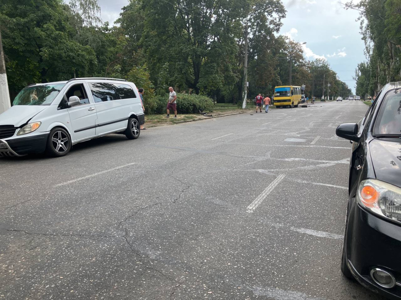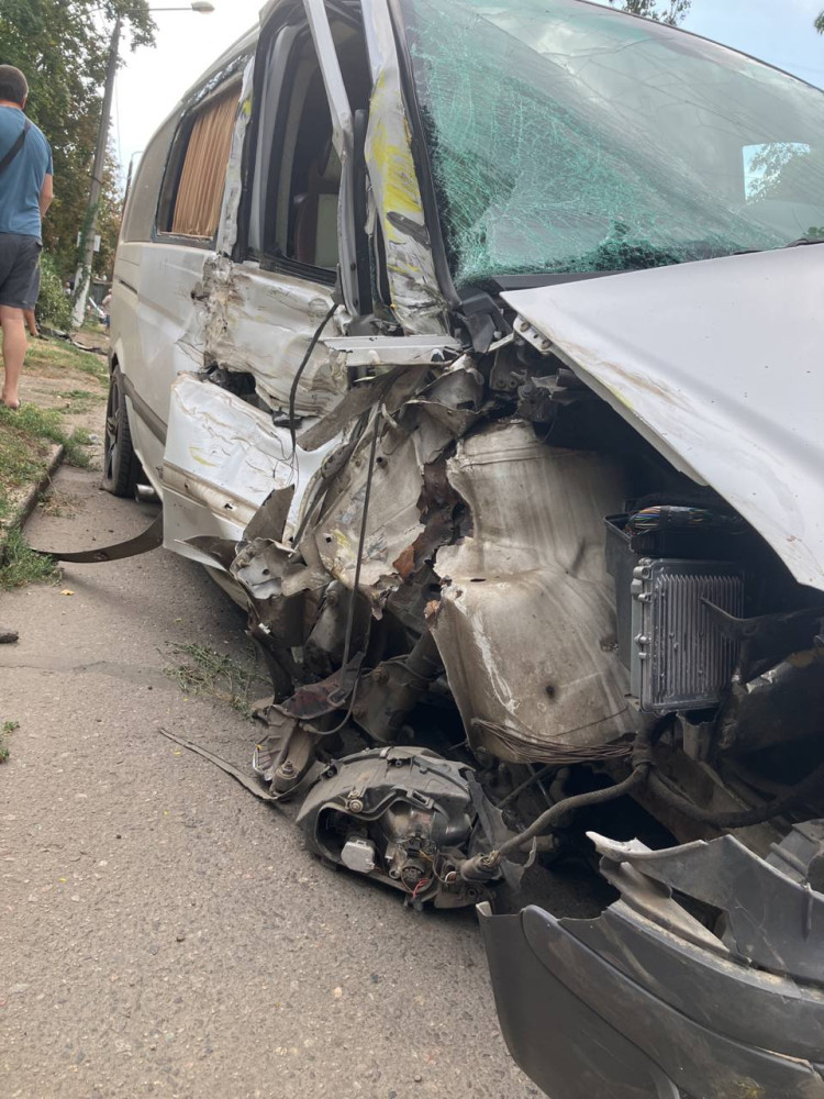 У Хаджибейському районі Одеси сталася ДТП за участю трьох автоДТП за участю трьох автомобілів сталася вдень 24 серпня в Хаджибейському районі Одеси. Як повідомили «Думській» очевидці подій, «Шевроле» вискочив з вулиці Героїв Крут у середній ряд на зелену стрілку, не переконавшись у безпеці маневру. У результаті автомобіль «Мерседес Віто», намагаючись уникнути зіткнення, вдарив маршрутку, що їхала в сусідньому ряду. За попередньою інформацією, постраждалих немає. Пошкоджено всі три транспортні засоби. Помітили помилку? Виділяйте слова з помилкою та натискайте control-enter Новини по цій темі: 30 серпня 2025: Машина вилетіла в кювет: мер Рені потрапив в аварію, його мати загинула, а маленький син у лікарні (фото) 18 серпня 2025: Троє загинули, один у лікарні: на трасі Одеса-Рені водій Mercedes не пропустив фуру (фото) 28 липня 2025: П'яний на "Ягуарі" або гіпертонік? Звільнений топ-посадовець одеської поліції хоче повернутися на службу 2 квітня 2025: В Одесі водій BMW спровокував аварію, в якій постраждали п`ятеро людей, і втік (фото, відео) |