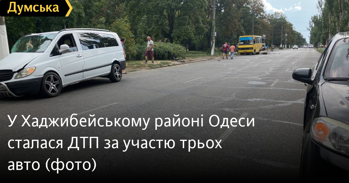 У Хаджибейському районі Одеси сталася ДТП за участю трьох автоДТП за участю трьох автомобілів сталася вдень 24 серпня в Хаджибейському районі Одеси. Як повідомили «Думській» очевидці подій, «Шевроле» вискочив з вулиці Героїв Крут у середній ряд на зелену стрілку, не переконавшись у безпеці маневру. У результаті автомобіль «Мерседес Віто», намагаючись уникнути зіткнення, вдарив маршрутку, що їхала в сусідньому ряду. За попередньою інформацією, постраждалих немає. Пошкоджено всі три транспортні засоби. Помітили помилку? Виділяйте слова з помилкою та натискайте control-enter Новини по цій темі: 30 серпня 2025: Машина вилетіла в кювет: мер Рені потрапив в аварію, його мати загинула, а маленький син у лікарні (фото) 18 серпня 2025: Троє загинули, один у лікарні: на трасі Одеса-Рені водій Mercedes не пропустив фуру (фото) 28 липня 2025: П'яний на "Ягуарі" або гіпертонік? Звільнений топ-посадовець одеської поліції хоче повернутися на службу 2 квітня 2025: В Одесі водій BMW спровокував аварію, в якій постраждали п`ятеро людей, і втік (фото, відео) |