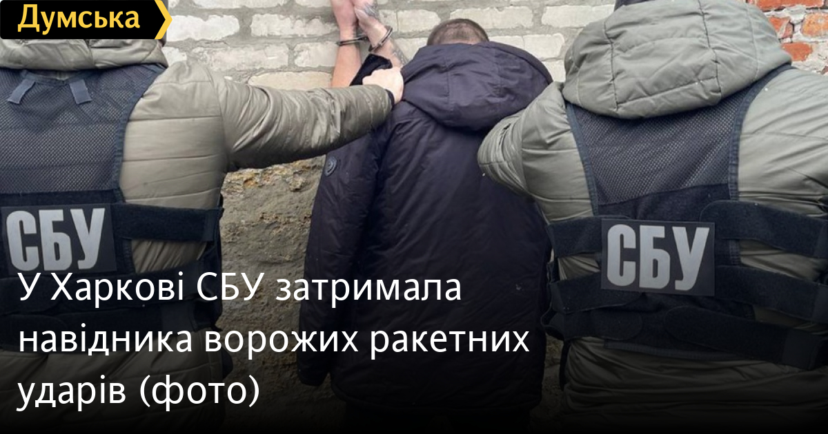 Оперативники Служби безпеки України затримали у Харкові чоловіка, який передавав ворогові координати військових та стратегічно важливих інфраструктурних об'єктів для завдання ракетних ударів.