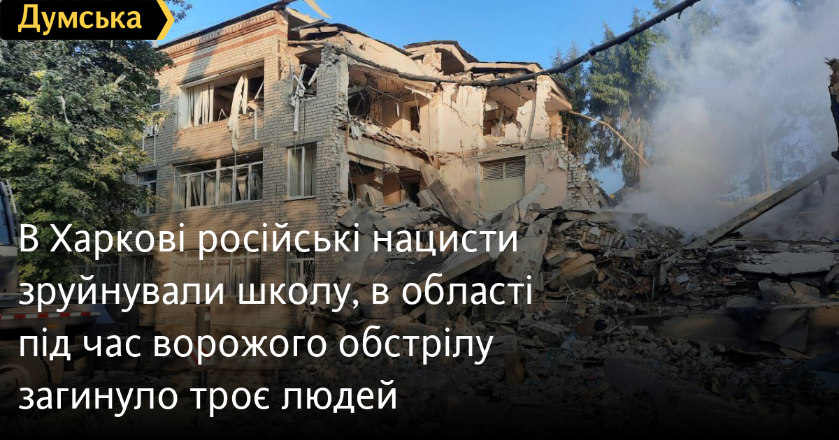 Як повідомляє голова Харківської ОВА Олег Синєгубов, за ціль військові терористи обрали загальноосвітню школу — вона повністю зруйнована.