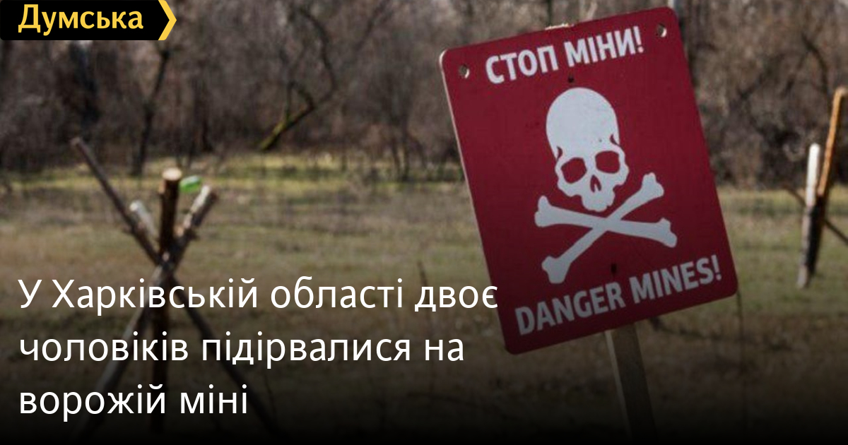 Двоє чоловіків 49 і 50 років підірвалися на міні в селі Кам'янка в Ізюмському районі Харківської області.