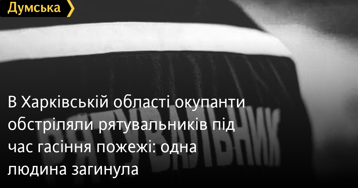 29-річний рятувальник з Харківскої області загинув внаслідок обстрілу окупантів. Ворог відкрив вогонь по людях, коли вони гасили пожежу.
