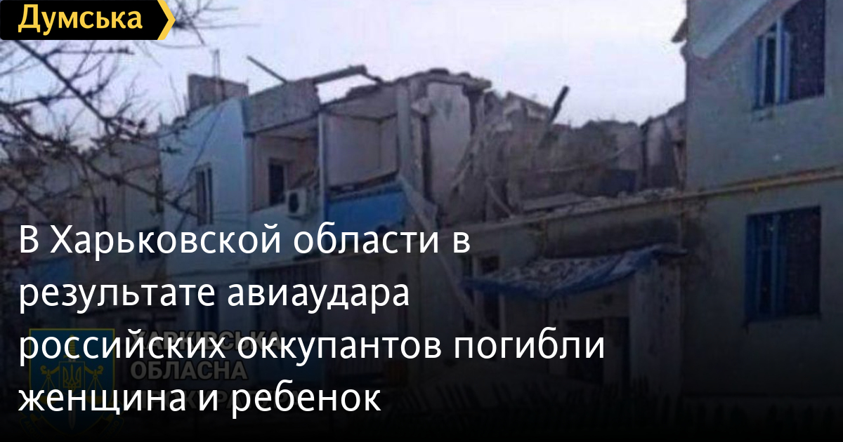 Как сообщают в Харьковской областной прокуратуре, военнослужащие вс рф нанесли авиаудар по жилому дому. Женщина и ребенок получили смертельные ранения.