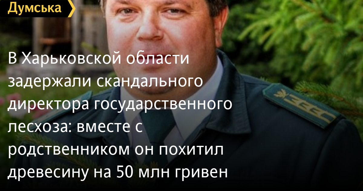 Директор одного из государственных предприятий лесного хозяйства Харьковской области задержан по подозрению в хищении древесины на 50 млн гривен.