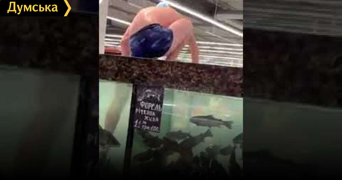 В одном из херсонских торговых центров мужчина в плавках и водолазных очках залез в аквариум с живыми карпами. Как сообщают местные издания инцидент произошел два дня назад в одном в ТРЦ «Фабрика» в супермаркете торговой сети «Сильпо». Мужчина разделся до трусов и залез в аквариум с живой рыбой. К своему перформансу он подготовился заранее, молодой человек был в плавках, очках и шапочке для плавания.