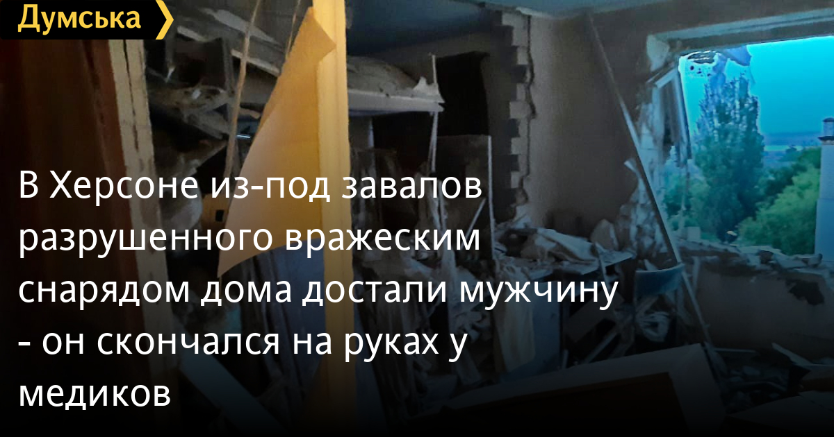 У Херсоні з-під завалів зруйнованого ворожим снарядом будинку дістали чоловіка — він помер на руках у медиківРятувальники витягли чоловіка з-під завалів зруйнованого російським снарядом будинку в Херсоні. Як повідомили в ДСНС, минулої ночі російський снаряд влучив в одну з квартир багатоповерхового житлового будинку. Там у момент обстрілу перебувала подружня пара. Жінка змогла вибратися самостійно, а чоловік опинився під завалами. Рятувальники, які прибули на місце події, дістали потерпілого з-під завалів і до прибуття швидкої надавали першу домедичну допомогу. Медики також намагалися реанімувати чоловіка, але, на жаль, від отриманих травм потерпілий помер. СМЕРТЬ РОСІЙСЬКИМ ОКУПАНТАМ! Помітили помилку? Виділяйте слова з помилкою та натискайте control-enter |