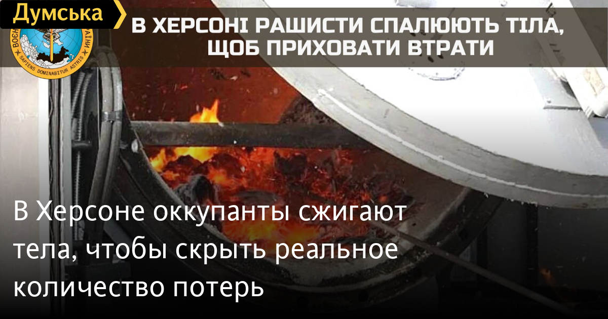 «Эти тела привозят грузовыми автомобилями из местного СИЗО. Чтобы скрыть факты умышленного сожжения тел, представители оккупационной армии пытаются выдать это за результате артиллерийских обстрелов и последующих пожаров. На месте происшествий сначала слышался мощный взрыв, после чего возник пожар. Доступ сотрудников МЧС для ликвидации пожара запрещается», — сообщают в разведке.