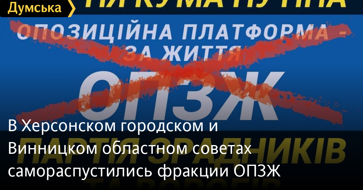 Фракции пророссийской партии ОПЗЖ прекратили существование в Херсонском городском и Винницком областном советах.