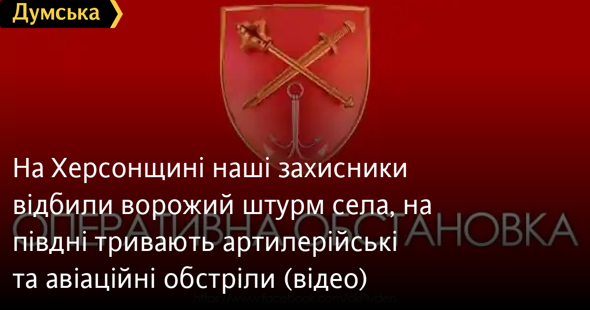 На Херсонщині наші захисники відбили ворожий штурм села, на півдні тривають артилерійські та авіаційні обстріли (відео)Окупанти силами десантно-штурмового взводу намагалися штурмувати село Біла Криниця на Херсонщині. Отримали відсіч і з втратами відступили. Про це повідомили у Оперативному командуванні «Південь». Істотних змін у складі угруповання ворожих військ на півдні України, її посилення чи підготовки до наступу не фіксується. Противник продовжує бити артилерією та використовувати авіацію. Вчора ворожі штурмовики дев'ять разів скоїли нальоти на позиції наших військ. Одного разу ворожий пілот випустив ракету «повітря – повітря» по українському літаку. Обійшлося без втрат. У відповідь наша авіація вчора здійснила чотири удари по місцях скупчення живої сили та техніки супротивника в районі Правдивого, Архангельського, Ольгіно, Білогірки та Новопетрівки. Артилерійські війська вчора знищили 15 рашистів, протитанковий ракетний комплекс, шість автомобілів та бронемашин. Увечері окупанти обстріляли із «смерчів» територію миколаївського порту. Ніхто не постраждав. Також російські нацисти вкотре обстріляли з «градів» та ствольної артилерії Нікополь. Пошкоджено три будинки та школу. Поранено двох цивільних. У Чорному морі знаходяться два ворожі кораблі з 16 ракетами «Калібр». СМЕРТЬ РОСІЙСЬКИМ ОКУПАНТАМ! Помітили помилку? Виділяйте слова з помилкою та натискайте control-enter |