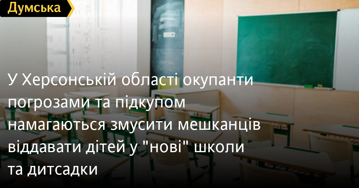 У Херсонській області окупанти погрозами та підкупом намагаються змусити мешканців захоплених територій віддати дітей до шкіл та дитсадків, які з 1 вересня планують розпочати навчальний рік за російськими освітніми програмами.