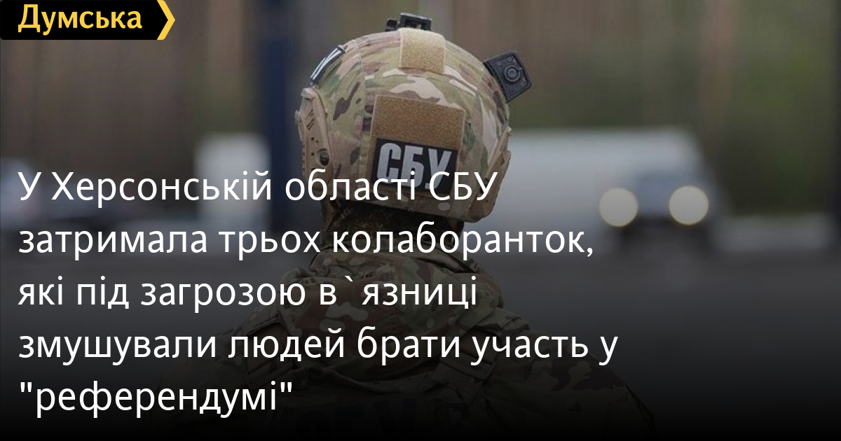 Служба безпеки України затримала трьох мешканок Бериславського району Херсонської області, які під час окупації зголосилися проводити псевдореферендум про приєднання регіону до росії.