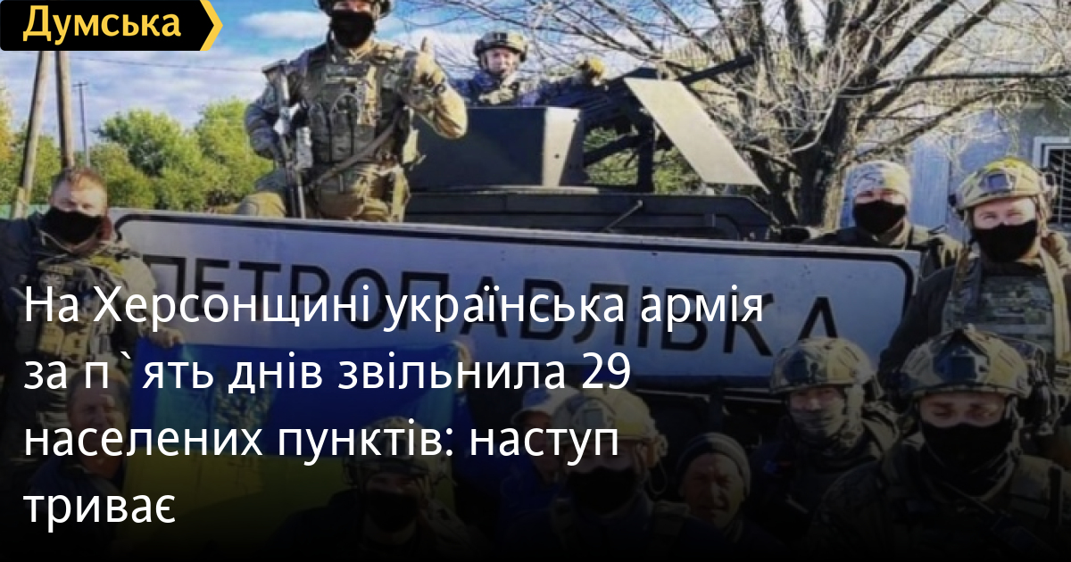 З 1 жовтня українські війська звільнили 29 населених пунктів у Херсонській області.
