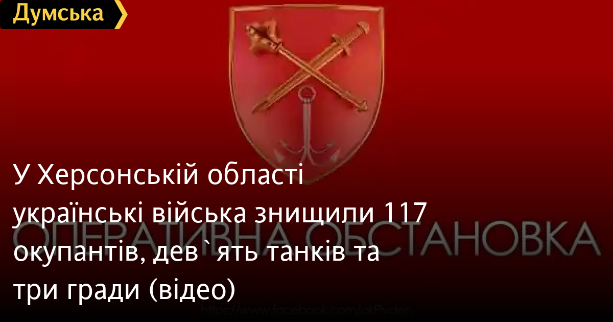 За даними Оперативного командування «Південь», наші захисники 30 серпня знищили 117 окупантів та понад 30 одиниць їх техніки: дев'ять танків Т-72, три РСЗВ «Град», самохідну гармату «Гіацинт-Б» та гаубицю «Мста-С».