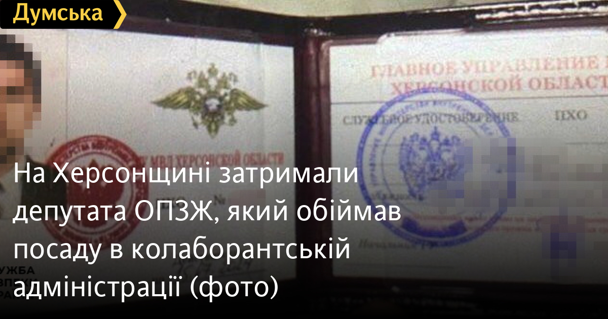 На Херсонщині затримали депутата ОПЗЖ, який обіймав посаду в колаборантській адміністраціїСпівробітники СБУ та поліції затримали на Херсонщині депутата забороненої в Україні проросійської партії «Опозиційна платформа – За життя», який під час окупації Херсона обіймав керівну посаду у створеній рашистами «адміністрації». У СБУ повідомили, що колаборант працював у відділі «боротьби з економічними злочинами», який насправді займався терором підприємців та змушував їх сплачувати податки до бюджету росії. Відкрито кримінальне провадження за ч.7 ст.111-1 Кримінального кодексу України (колабораційна діяльність). СМЕРТЬ РОСІЙСЬКИМ ОКУПАНТАМ! Помітили помилку? Виділяйте слова з помилкою та натискайте control-enter |