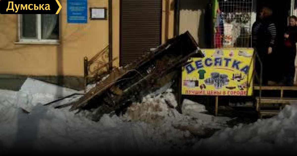 В Ильичевске глыба снега снесла крыльцо нотариальной конторы