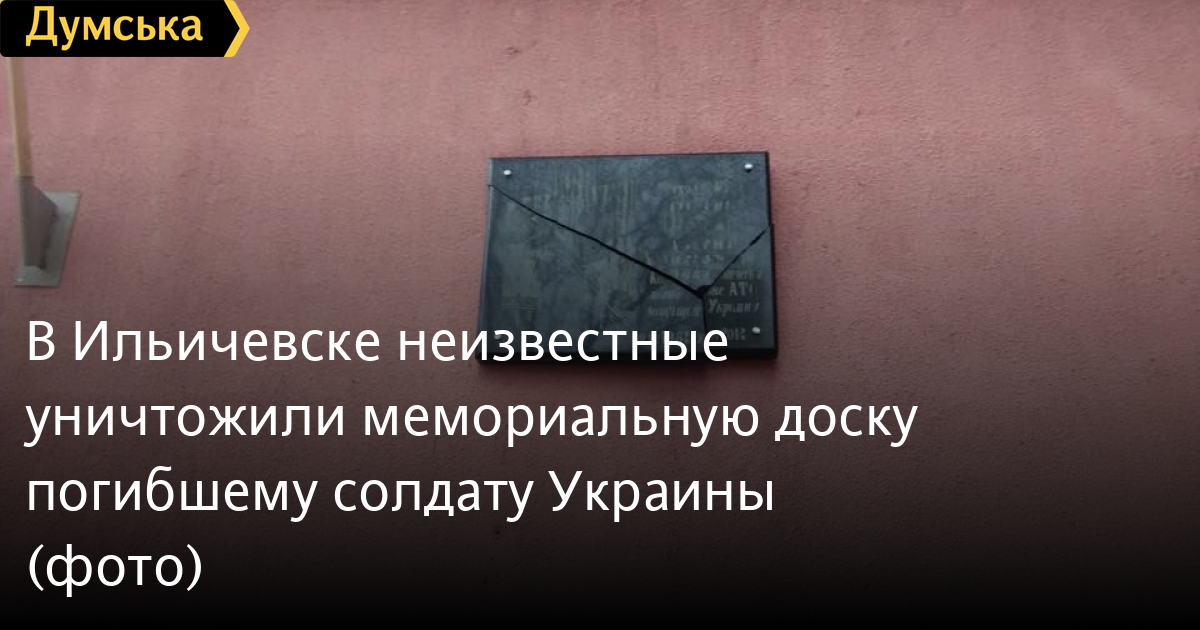В Ильичевске вандалы расстреляли мемориальную доску погибшему в АТО местному жителю Виталию Шуму.