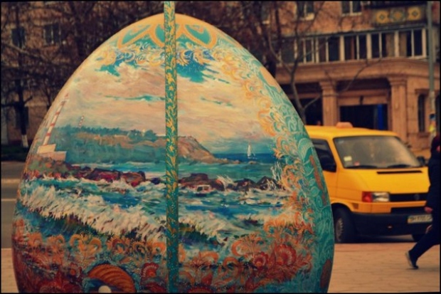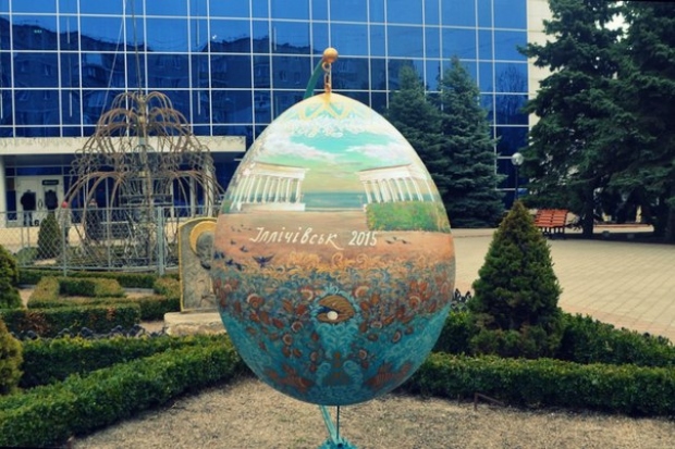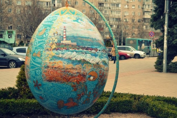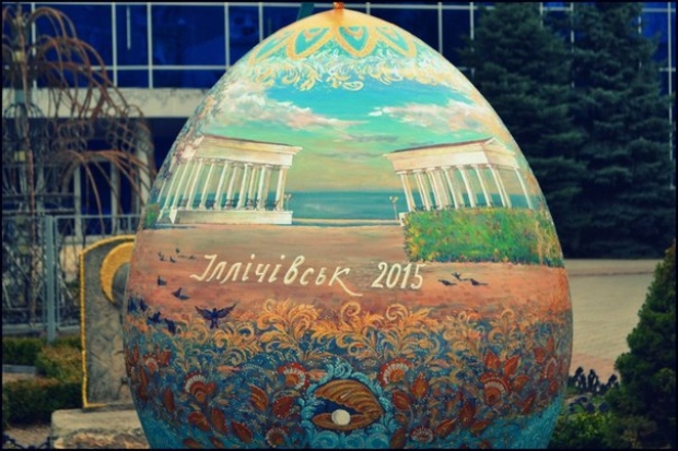 На площади перед Ильичевской мэрией появилось двухметровое пасхальное яйцо.