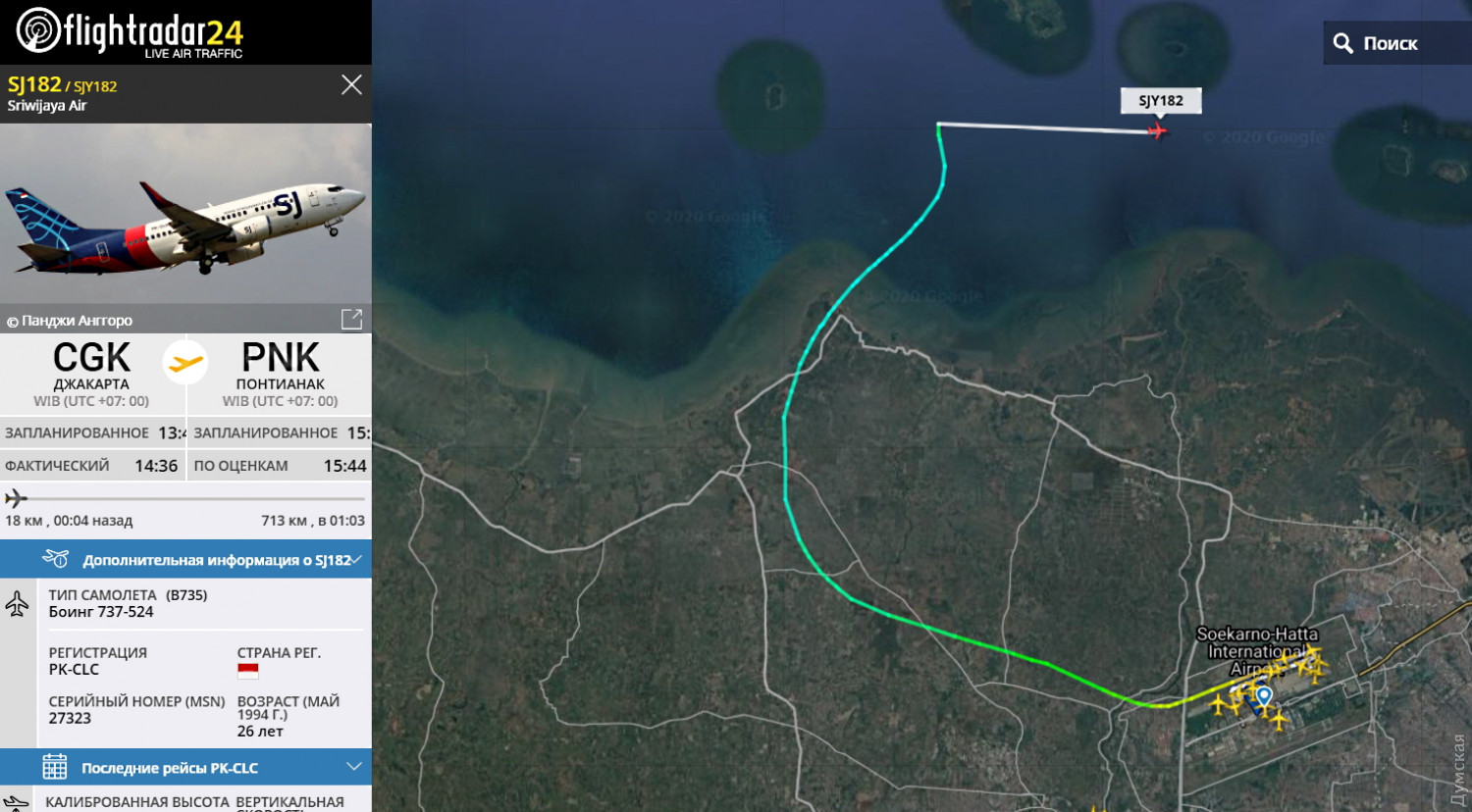 Самолет авиалиний Sriwijaya Air, вылетевший из Джакарты, потерпел крушение вскоре после взлета. На борту находились 62 человека, в том числе шестеро членов экипажа. Об этом сообщает телеканал CNN. Министр транспорта Индонезии Буде Карья Сумади подтвердил катастрофу — по его словам, самолет упал в Яванском море. Обломки и части тел найдены у острова Мале. По данным Dailymail, очевидцами авиакатастрофы стали рыбаки. Они рассказали, что увидели, как самолет падает в море. Позже прогремели два взрыва. Сейчас поисково-спасательные работы продолжаются. Сообщается, что самолет выполнял полеты в течение последних 26 лет. ОБНОВЛЕНО В 16:18. Как сообщает пресс-секретарь МИД Украины Олег Николенко, на борту разбившегося самолета украинцев не было. фото dailymail СМЕРТЬ РОССИЙСКИМ ОККУПАНТАМ! Заметили ошибку? Выделяйте слова с ошибкой и нажимайте control-enter |