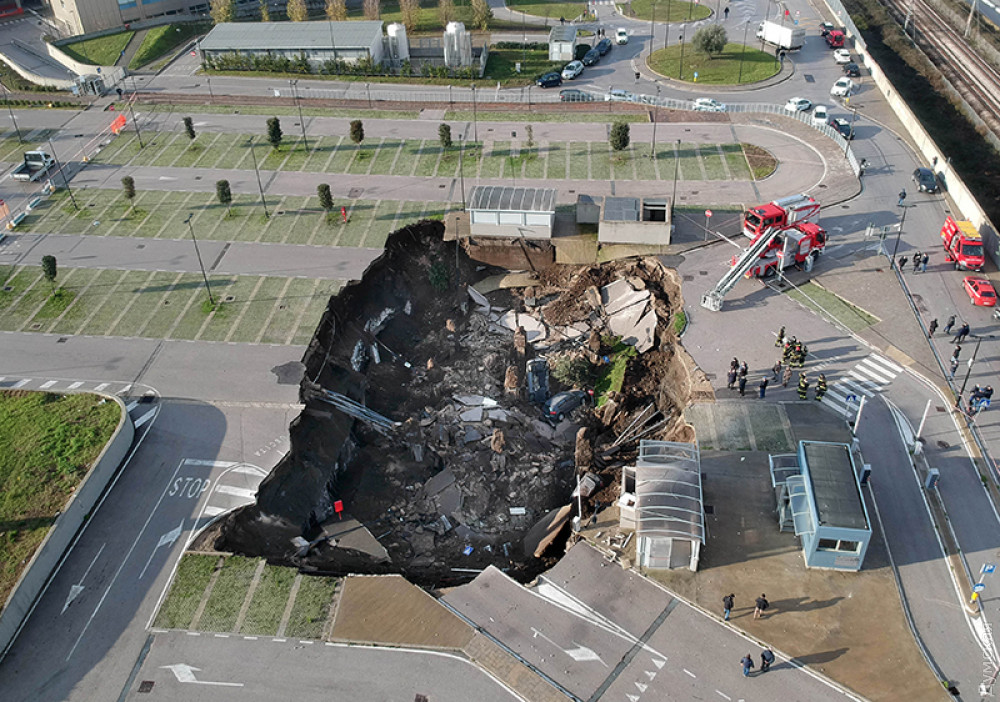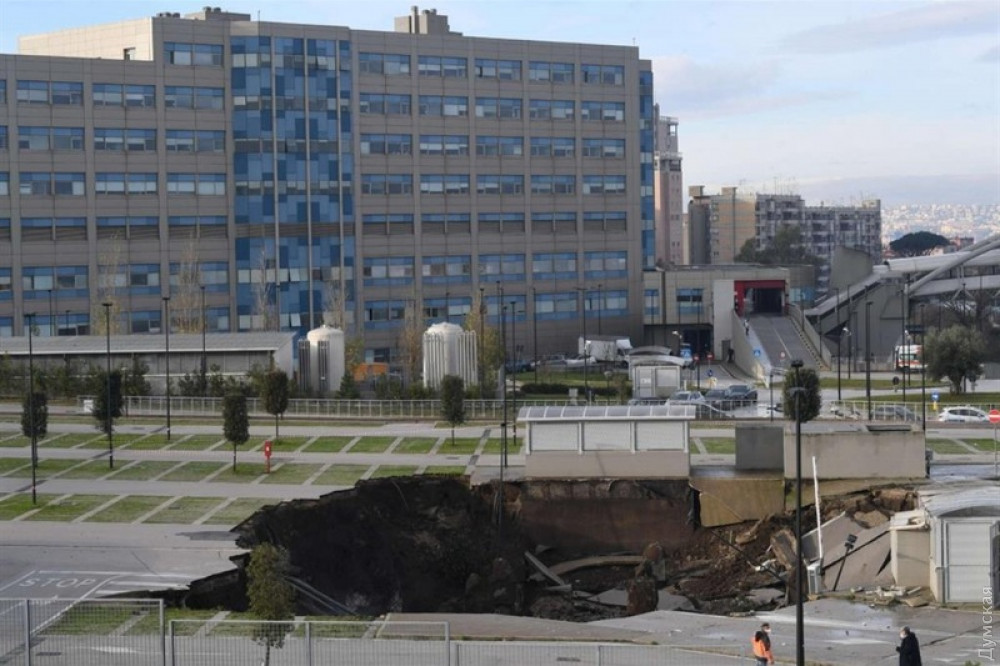 Огромная воронка образовалась возле больницы Ospedale del Mare Неаполя, где лечат больных с COVID-19.