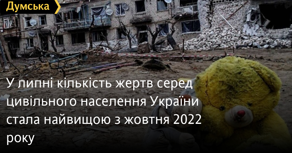 У липні кількість жертв серед цивільного населення України стала найвищою з жовтня 2022 рокуЩонайменше 219 мирних жителів загинули в липні цього року внаслідок російських обстрілів. Ще 1018 дістали поранення. Згідно зі звітом ООН, це найвищий показник за кількістю жертв серед цивільних з жовтня 2022 року. «Велика кількість жертв у липні продовжує тенденцію до зростання жертв серед цивільного населення з березня 2024 року», — сказано в документі. В ООН нагадали про масовану атаку 8 липня, під час якої загинули щонайменше 43 мирні жителі, зокрема п'ятеро дітей, а поранення дістали 147 осіб, зокрема семеро дітей, у Києві, Дніпрі, Кривому Розі та Київській області. Також у звіті зазначено, що в червні-липні інтенсивні наступальні військові дії рф змістилися з північної частини Харківської області в Донецьку. «Унаслідок цього підтверджені втрати серед цивільного населення в Донецькій області зросли зі 125, загиблих і поранених у травні, до 224 - у червні та 269 - у липні 2024 року», — пояснили в ООН. СМЕРТЬ РОСІЙСЬКИМ ОКУПАНТАМ! Помітили помилку? Виділяйте слова з помилкою та натискайте control-enter |