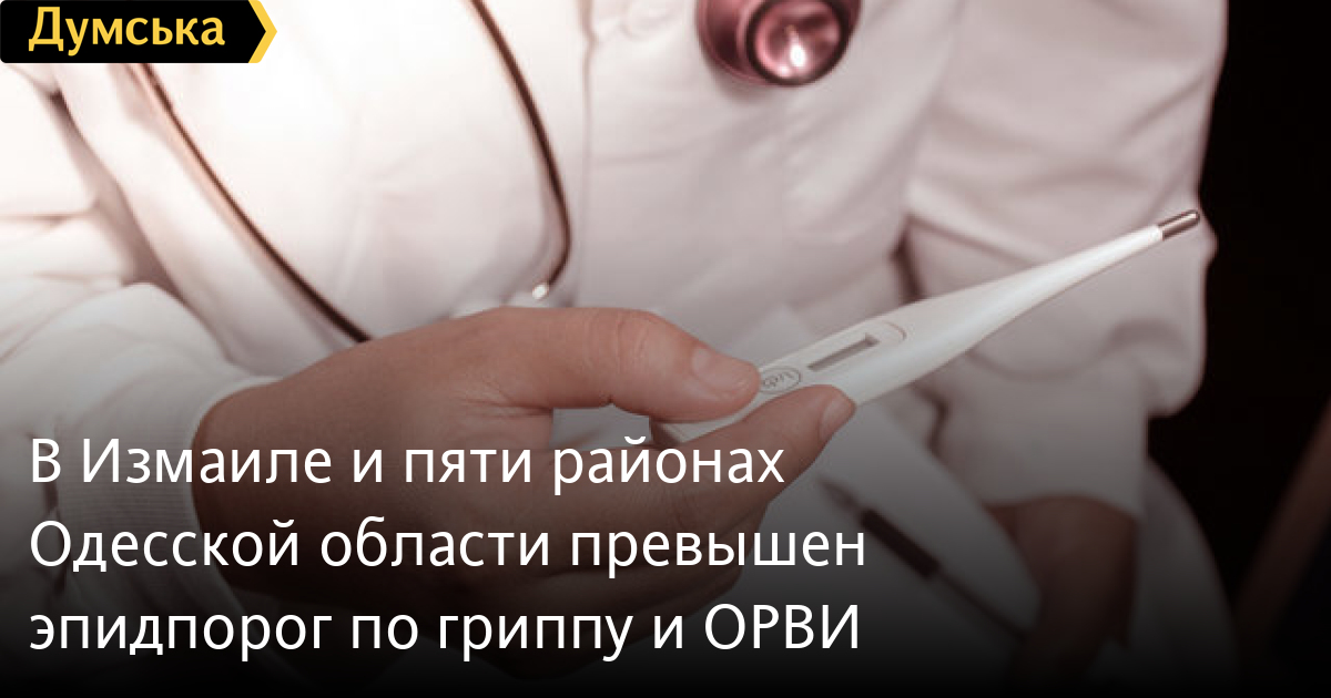 Превышение эпидемического порога по гриппу и ОРВИ зарегистрировано в Измаиле (на 1,8%) и пяти районах Одесской области: Беляевском (на 3,%), Ивановском (на 29%), Николаевском (на 7,5%), Ренийском (на 29,й%) и Татарбунарском (на 9%).