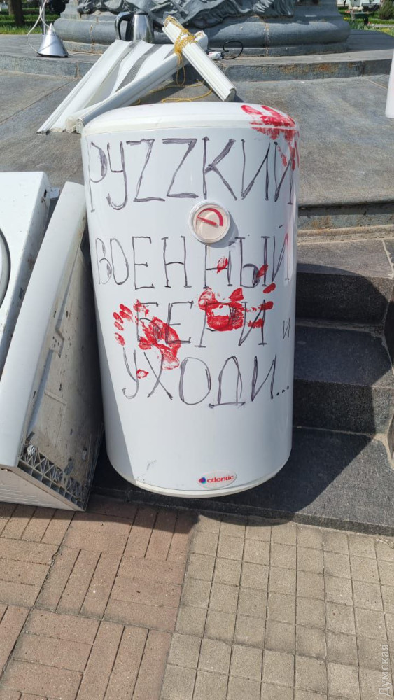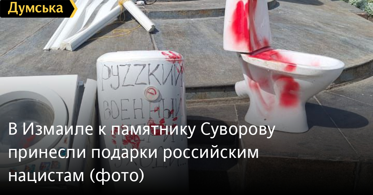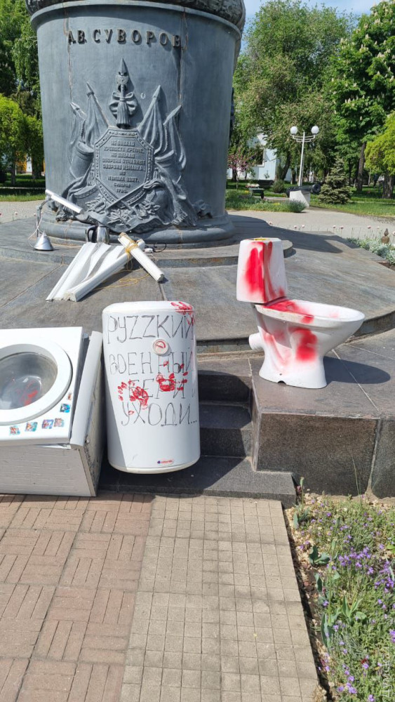 Жители Измаила принесли к памятнику российскому полководцу Александру Суворову «подарки» для мародеров из армии рф.