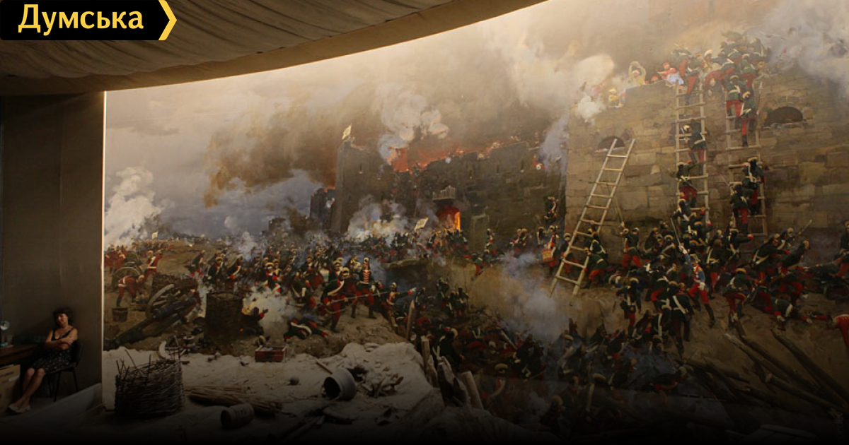 В столице Придунавья открыли для публики отреставрированную диораму «Штурм крепости Измаил», которой 9 мая сего года исполнится 40 лет. Полотно за неделю обновили представители той же московской студии баталистов им. М. Грекова, что создавала произведение искусства. В частности, реставрацией занимались член Союза художников РФ Федор Юдин и заслуженный художник России Андрей Сибирский (сын одного из авторов картины). Диорама (с др.-греч. «сквозь», «зрелище») –лентообразная, изогнутая полукругом историческая картина, не ограниченная рамой, окружает зрителя, создавая эффект присутствия. Для большей убедительности живопись соединяется с объемными трехмерными предметами. Измаильская диорама, филиал историко-краеведческого музея А. В. Суворова, была открыта 9 мая 1973 года в здании бывшей турецкой мечети XVI века. Кстати, мечеть — единственное сооружение, сохранившееся от взятой суворовскими чудо-богатырями крепости. Работа над созданием диорамы началась в 1971 году. Она была поручена известной Студии им. М. Б. Грекова, создавшей около 80 диорам. Народный художник России Евгений Данилевский (ныне покойный) представил эскиз. Впоследствии он вспоминал: «Уже стоял холст, было начато письмо, но не хватало времени, и я пригласил Вениамина Сибирского. У него опыта диорамного не было. Эскиз был мой. Мы начали работать. Помещением для нашей диорамы должна была стать старая турецкая мечеть в Измаиле. Нужно было пройти весь исторический и иконографический материал, т.е. обыкновенный путь художника…» Художественное полотно размером 20х8 м было успешно закончено в 1973 году. Интересно, что изображенная на диораме средневекового типа крепость совершенно не похожа на фортификационное сооружение, которое в действительности брали русские войска. Настоящая измаильская крепость перестраивалась в XVIII веке и к моменту штурма представляла собой систему рвов, земляных валов и одиннадцати бастионов, во многих местах обложенных камнем или подпорной кирпичной стеной. Камень доставлялся попутно по Дунаю, кирпич делали из местной глины. На вершине вала, во многих местах был установлен деревянный частокол. Каменных стен и башен, как в средневековой Аккерманской крепости, не было. Защищали Измаил 35 тысяч турецких солдат при 260 орудиях. Фото tema.ru, использованы материалы БФ «Крепость Измаил» СМЕРТЬ РОСІЙСЬКИМ ОКУПАНТАМ! Помітили помилку? Виділяйте слова з помилкою та натискайте control-enter |
