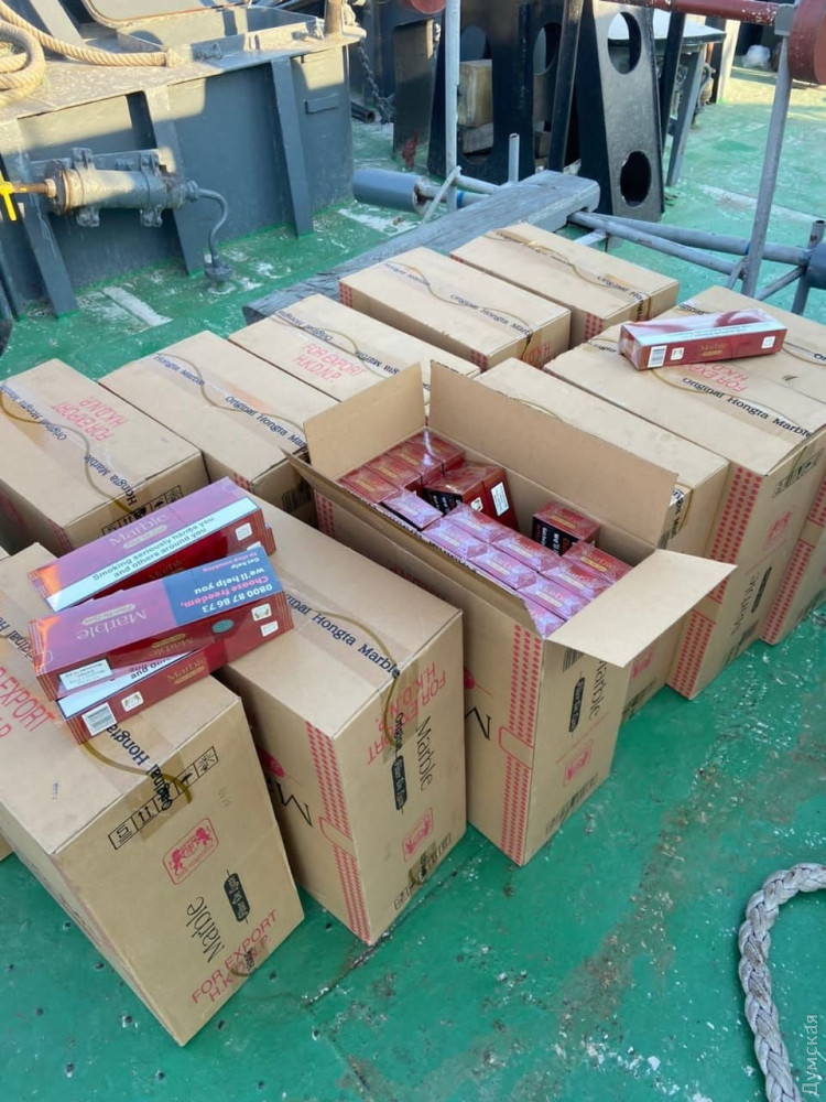 Сотрудники Госпогранслужбы во время осмотра судна в Измаиле обнаружили на борту 12 ящиков с контрабандными сигаретами.