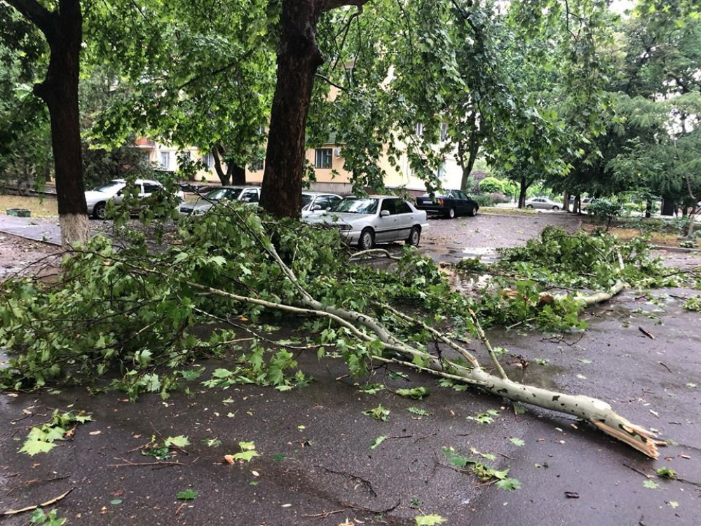 Сегодня в Измаиле сильный ветер с дождем сломал множество деревьев и нарушил планы горожан.