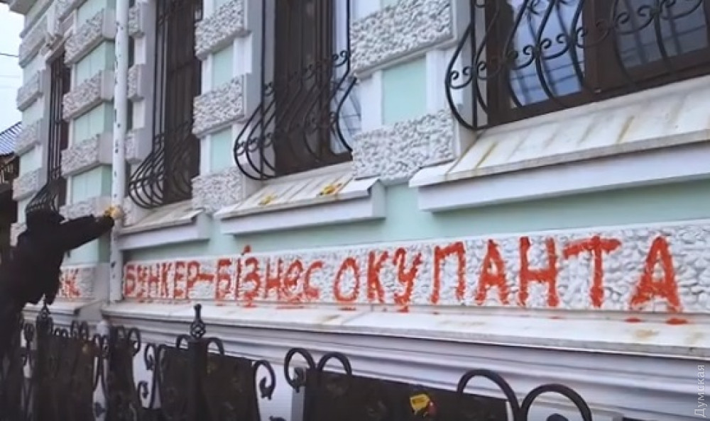 На днях они наведались к офису одной из фирм группы, расположенному на Лидерсовском бульваре, 19, и разрисовали стены памятника архитектуры XIX века российскими флагами и надписями «Трансбункер — бизнес оккупанта».