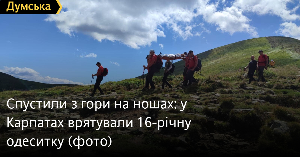 Спустили з гори на ношах: у Карпатах врятували 16-річну одеситку16-річній одеситці стало зле, коли вона спускалася з Говерли. Рятувальники, які прибули на місце, за допомогою нош доставили дівчину вниз, повідомило регіональне управління ДСНС Івано-Франківської області. Юна одеситка піднімалася на гору в групі молодіжного табору зі 120 осіб. На зворотному шляху її самопочуття погіршилося і довелося викликати рятувальників. Дівчині надали медичну допомогу та доправили її на навчально-спортивну базу «Заросляк» у Ворохті. «Нагадуємо громадянам про те, що необхідно відповідально ставитися до туристичних походів, планувати свій маршрут і не переоцінювати свої фізичні можливості, а також мати із собою аптечку, воду та запас їжі», — зазначили в управлінні ДСНС. Помітили помилку? Виділяйте слова з помилкою та натискайте control-enter |