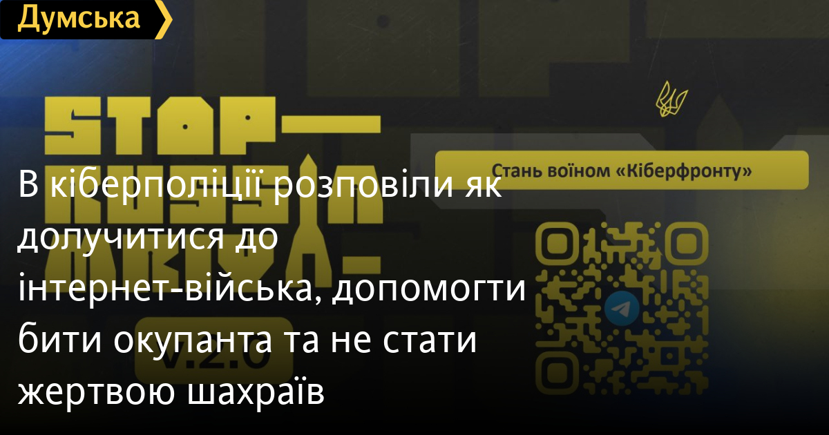 В кіберполіції розповіли як долучитися до інтернет-війська, допомогти бити окупанта та не стати жертвою шахраївЯк долучитися до інтернет-війська, щоб блокувати ресурси ворога, та чим ще можна допомогти нашим військовим за допомогою телефона чи комп'ютера, розповіли в кіберполіції. Департамент кіберполіції створив та підтримує проєкт «МРІЯ» StopRussiaChannel MRIYA, який обʼєднує небайдужих громадян у напрямку протидії дезінформації, а також російській пропаганді у мережі Інтернет. На сьогодні, у проєкту є офіційний сайт, а також декілька окремих ініціатив: StopRussiaChannel MRIYA (основний телеграм-канал, де здійснюються комунікація з підписниками, а також надання завдань для блокування; @stopdrugsbot (бот для збору нових посилань на ворожі ресурси, а також автоматизованої взаємодії з користувачами) Avanger_bot (офіційний бот для збору інформації про ворожу техніку, колаборантів, мародерів та іншу оперативну інформацію) гра «Котяцький драйв» для підняття морального духу громадян та допомога ЗСУ Інформацію про ворожі ресурси, фейки та пропаганду можна надсилати сюди. Також до проєкту додано новий Сервіс StopFraudMriya — StopFraudMriyа — дозволяє перевірити безпечність онлайн-шопінгу чи банківського переказу. Ворог також намагається завдати удару по фінансовій сфері, а тому обізнаність допомагає у спільній справі протидії російській агресії. Крім того, тут можна дізнатися типові схеми шахрайства, щоб уберегти себе від них, знайти поради та рекомендації як діяти, коли, на жаль, вже втратив гроші або товар і куди звертатися за допомогою. Вже доступна: 1. Перевірка номера телефону СМЕРТЬ РОСІЙСЬКИМ ОКУПАНТАМ! Помітили помилку? Виділяйте слова з помилкою та натискайте control-enter |