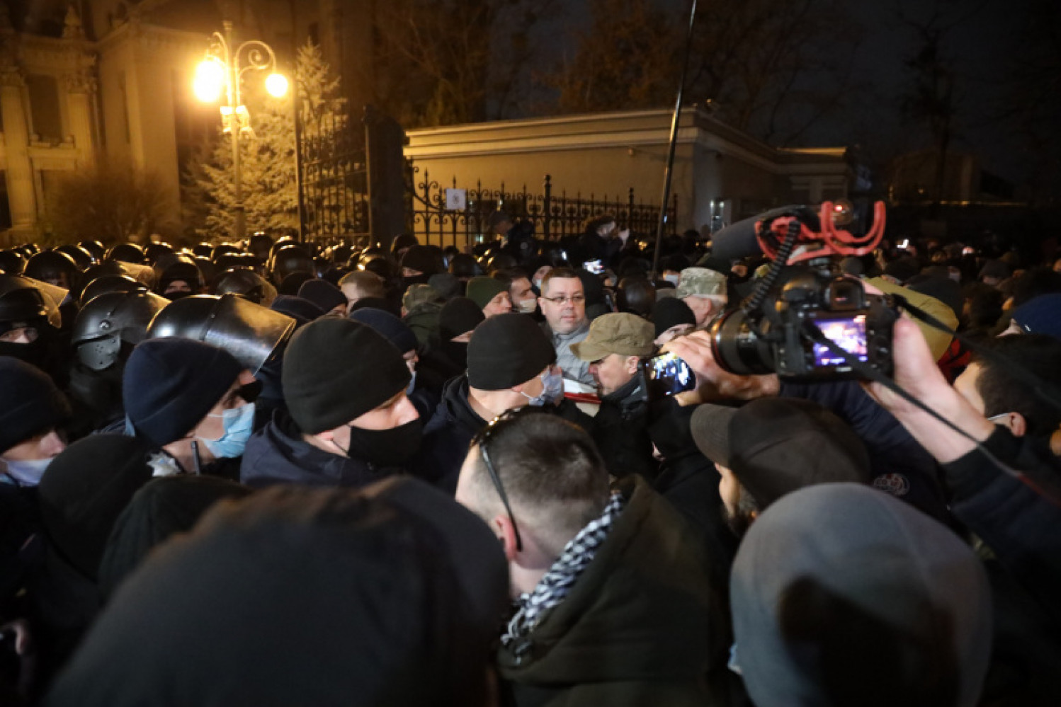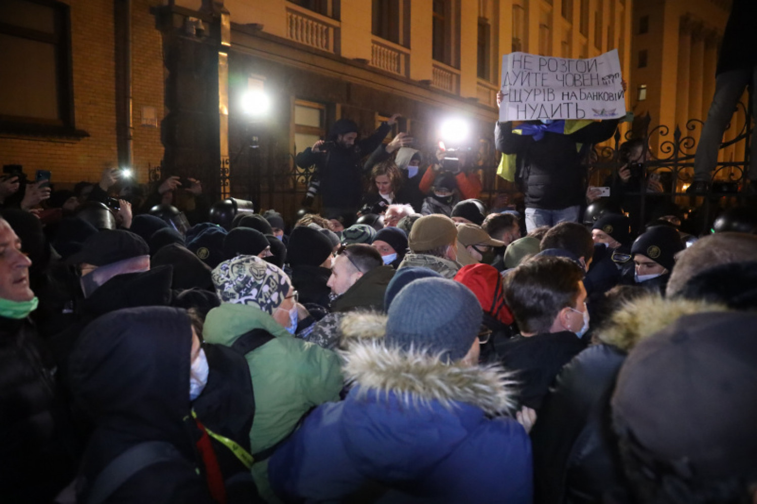 В Киеве между участниками марша ко Дню Достоинства и правоохранителями произошли стычкиВечером 21 ноября в Киеве участники марша ко Дню достоинства и Свободы решили устроить акцию под Офисом президента, где правоохранители значительно усилили меры безопасности. Участники акции призвали полицию не проверять их личные вещи для прохода к зданию ОП, поскольку это нарушает их права. И попытались прорваться через кордон, что и привело к стычкам с правоохранителями. Участники акции кричали «Зелю геть», «Пропускай» и «Ганьба». У протестующих был замечен баннер с надписью «Импичмент». На ТРЦ «Глобус» участники акции вывесили большой плакат с изображением Владимира Зеленского и главы Офиса Президента Андрея Ермака. Фото — РБК СМЕРТЬ РОССИЙСКИМ ОККУПАНТАМ! Заметили ошибку? Выделяйте слова с ошибкой и нажимайте control-enter |
