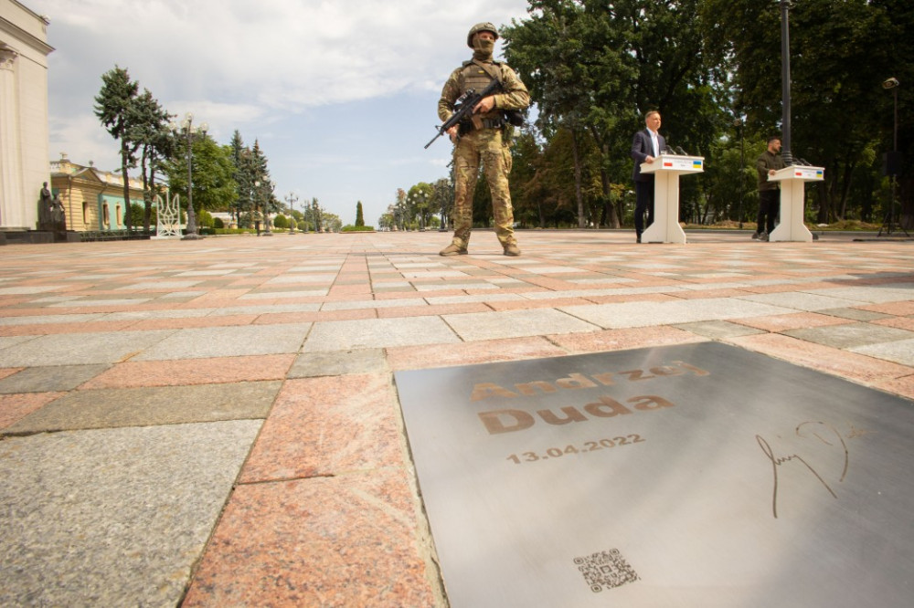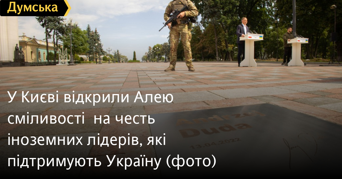 «Сьогодні я хочу в присутності президента Польщі Анджея Дуди відкрити Алею сміливості. Його ім’я завжди буде на цій Алеї. Це символ хоробрості, символ дружби, підтримки України тоді, коли вона справді потрібна», – цитує Володимира Зеленського пресслужба Офіс президента.