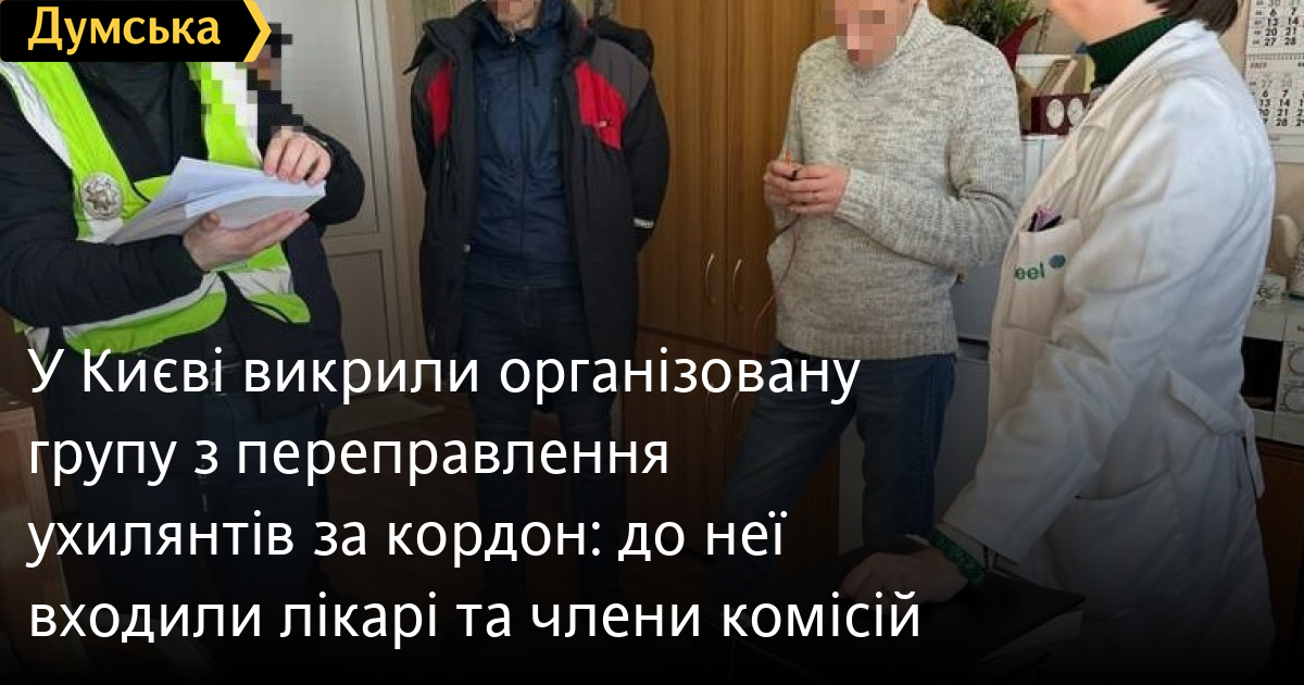 15 учасників організованої групи, яка розробила незаконну схему переправлення чоловіків призовного віку за кордон, викрили правоохоронці у Києві. До неї входили працівники п’яти столичних медзакладів та члени лікарських комісій.
