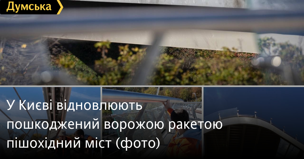 Столичні комунальники приступили до ремонту пішохідно-велосипедного мосту через Володимирський узвіз, який 10 жовтня був пошкоджений ворожою ракетою, що впала поряд.