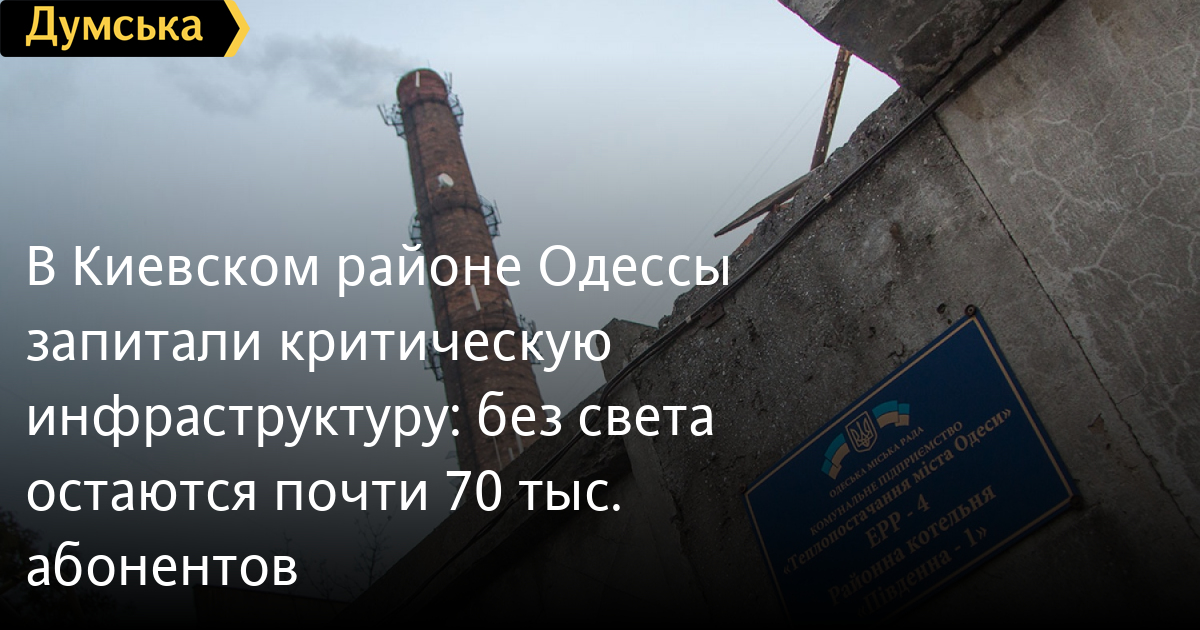 В Киевском районе Одессы запитали критическую инфраструктуру: без света остаются почти 70 тыс. абонентовКритическую инфраструктуру в Киевском районе подключили к электроэнергии. Свет также удалось вернуть более 30ти тысячам абонентов, сообщают в ДТЭК . Тем не менее, почти 70 тыс семей в южной части Одессы все еще без электричества. Энергетики работают круглосуточно, чтоб поэтапно чтоб запитать остальных жителей. Разрушения на подстанциях значительные, поэтому на ремонт необходимо много времени. По информации городской власти, на Таирово круглосуточно открыты пункти Незламності. Только за прошлые сутки их посетили больше 13 тыс. жителей, из них 5 наведались в мобильные пункты обогрева. Напомним, 17 февраля враг массированно атаковал Одессу ударными беспилотниками. Значительно был поврежден энергообъект. Три человека пострадали. Без света, тепла и воды остался один из крупнейших районов города. СМЕРТЬ РОССИЙСКИМ ОККУПАНТАМ! Заметили ошибку? Выделяйте слова с ошибкой и нажимайте control-enter |